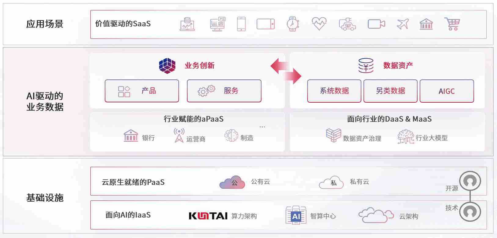 数字时代,,,,围绕企业数字化转型的关键要素,,EBpay数码开创性的提出数云融合战略和技术体系框架,,,着力在云原生、、、数字原生、、AI原生和信创产业上架构产品和服务能力,,,,为处在不同数字化转型阶段的快消零售、、、汽车、、、金融、、、、医疗、、、政企、、教育、、运营商等行业客户提供泛在的敏捷IT能力和融合的数据驱动能力,,,,构建跨界融合创新的数字业务场景和新业务模式,,助力企业级客户建立面向未来的核心能力和竞争优势,,,,全面推动社会的数字化、、、、智能化转型升级。。。