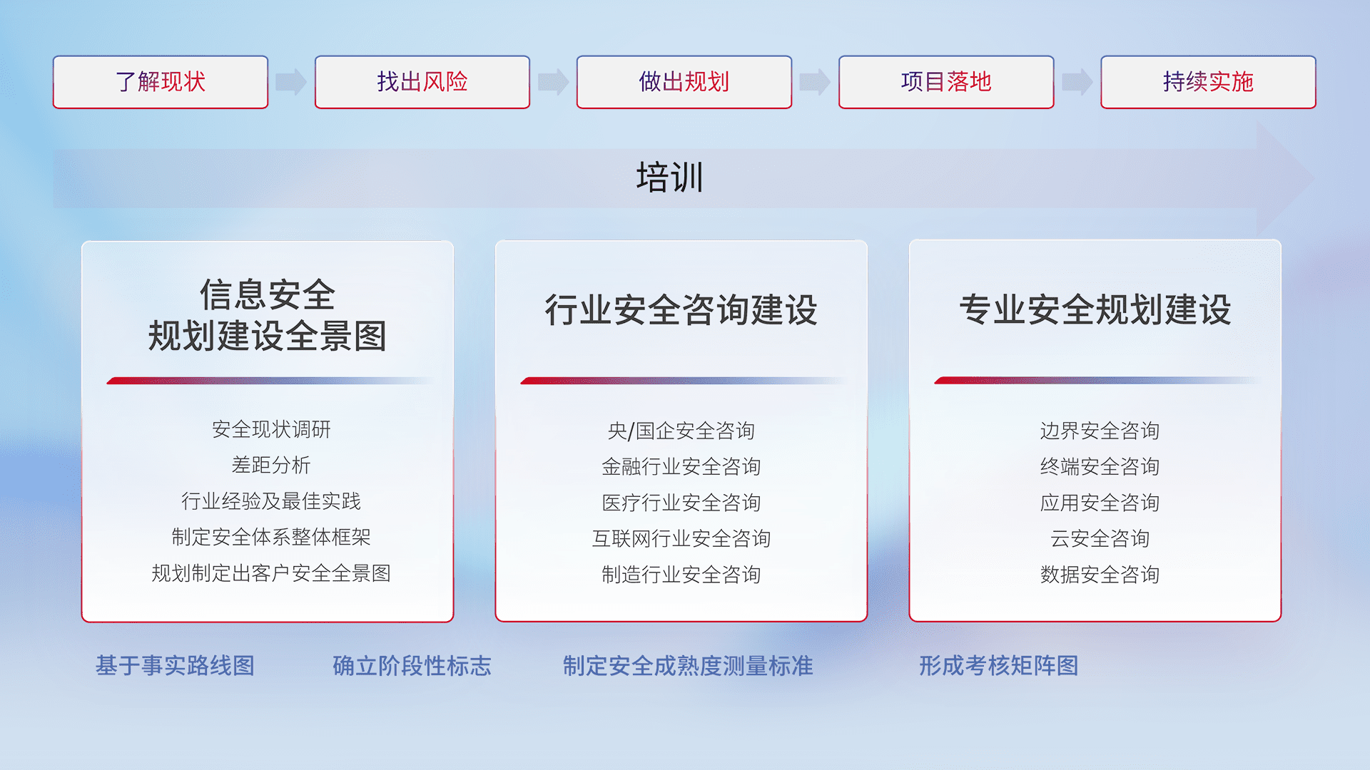 通过专业的法律咨询解读、、合规架构体现、、差异化解决方案、、、、测试实施支持等服务,,为客户量身打造等保合规体系。。。