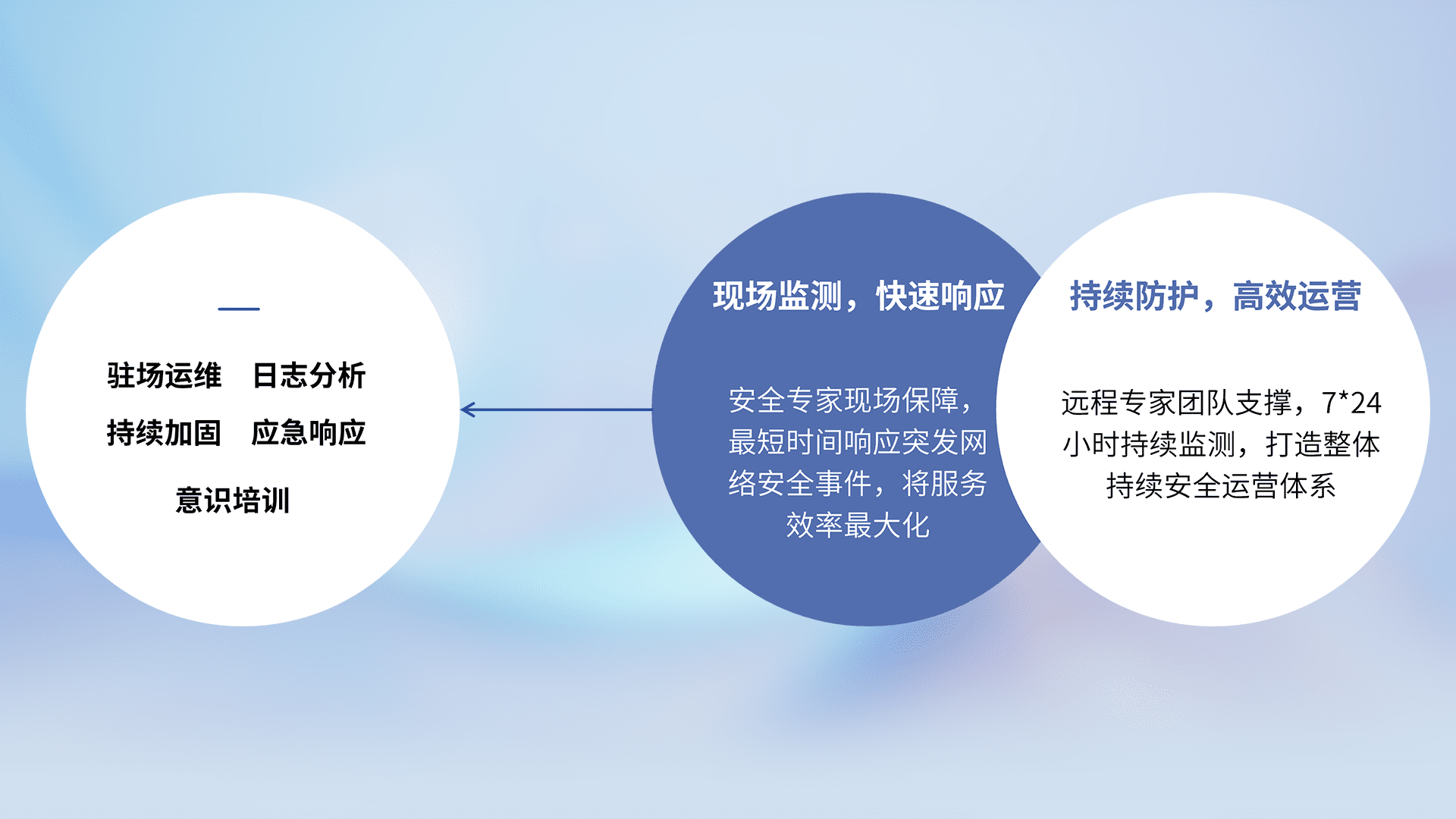 针对客户行业特性,,提供专属的一站式安全管理服务,,帮助客户全面感知网络空间威胁,,,,通过安全专家的线上、、、线下防护支持,,,实现风险闭环,,,将安全保障常态化,,,,为客户打造常态化安全运维运营服务。。